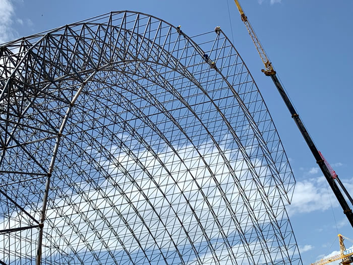 (2)网架加工前应对现场尺寸进行复测,确认无误后方可进行加工、安装;网架制作、运输、安装应遵守《空间网格结构技术规程》JGJ7-2010、《钢网架苏州螺栓球节点》JG/T 10-2009、《钢网架苏州螺栓球节点用高强度螺栓》 GB/T 16939-2016、《苏州钢结构苏州工程苏州施工规范》 GB50755-2012、《苏州钢结构苏州工程苏州施工质量验收标准》 GB50205-2020。